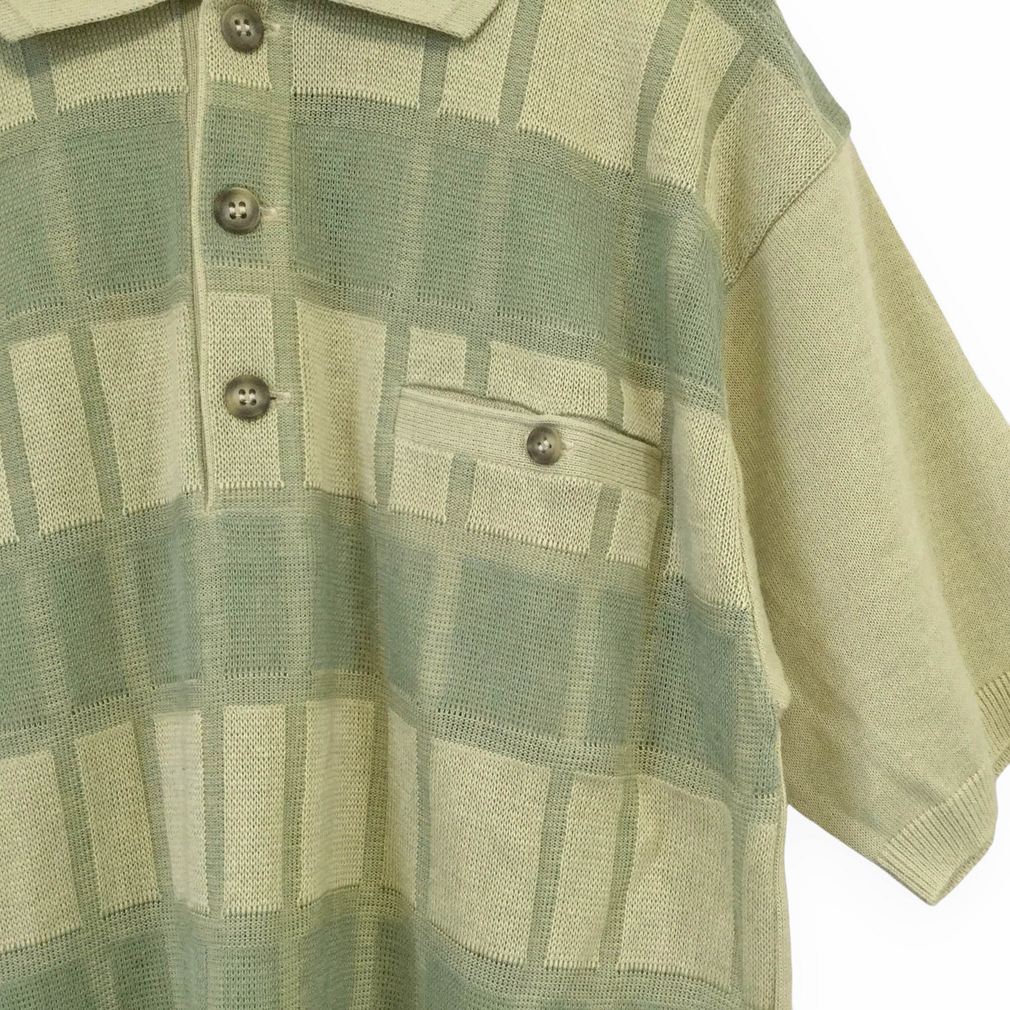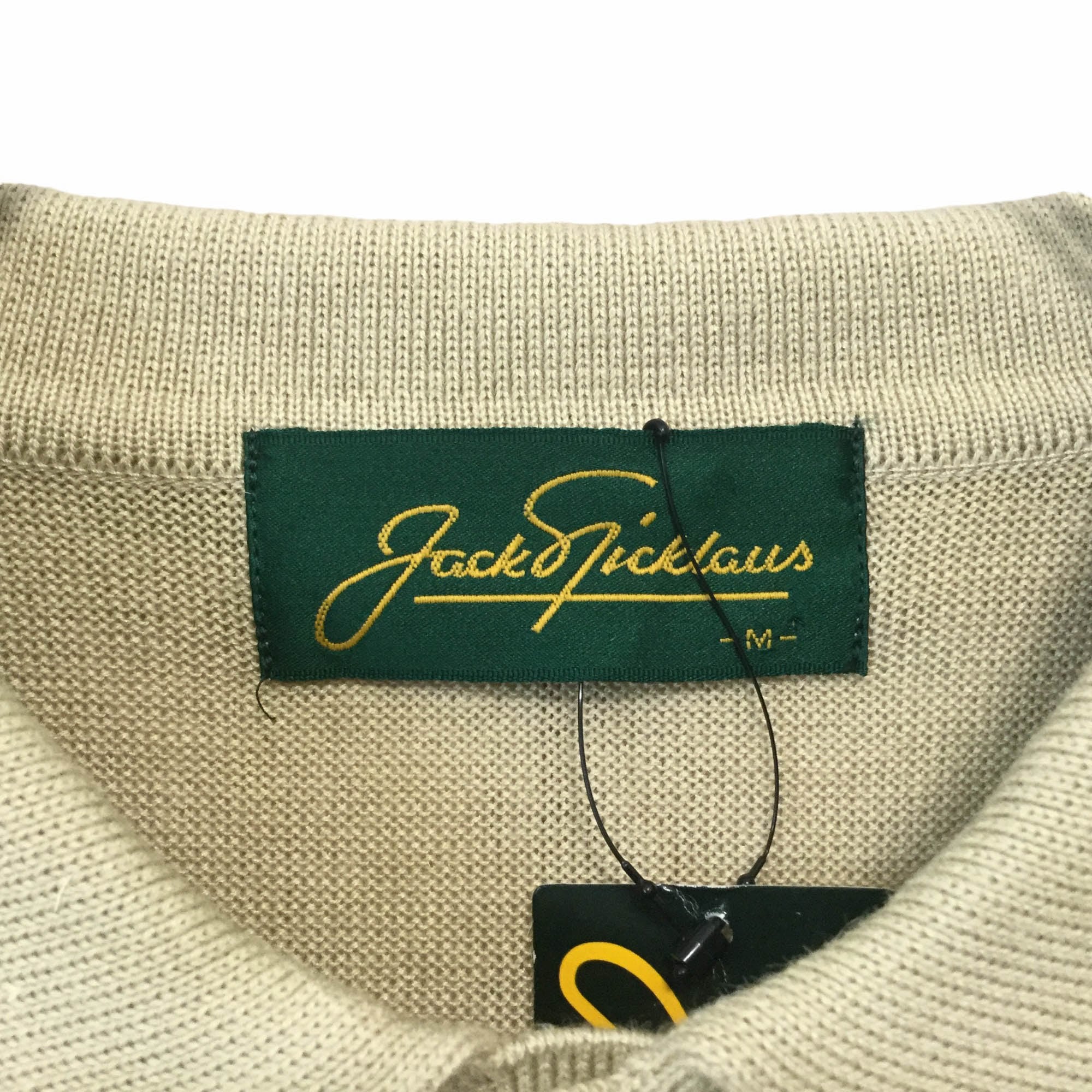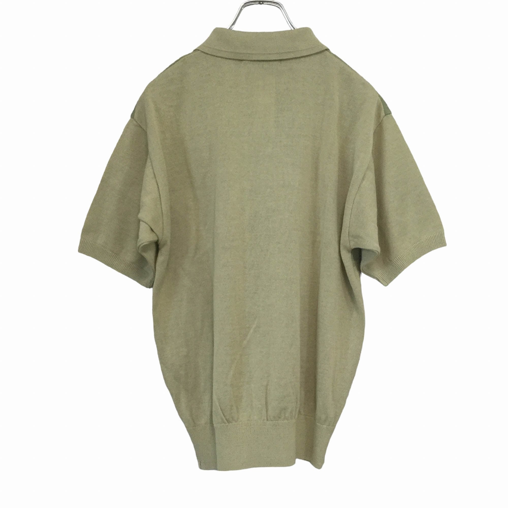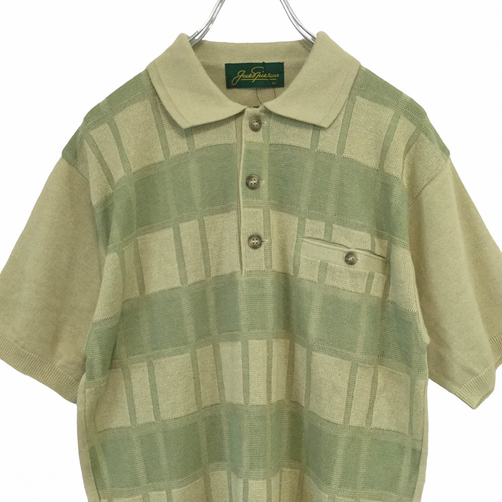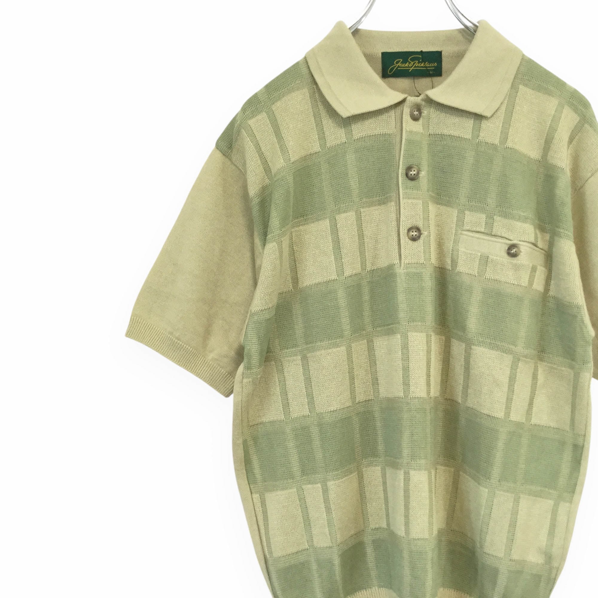 ジャックニクラウス ベージュ 未使用品 Jack Nicklaus 古着 半袖 ポロシャツ 麻混ニット 麻50% 日本製 Mサイズ メンズ チェック柄 ジャガード編み 上品 きれいめ ゴルフウェア