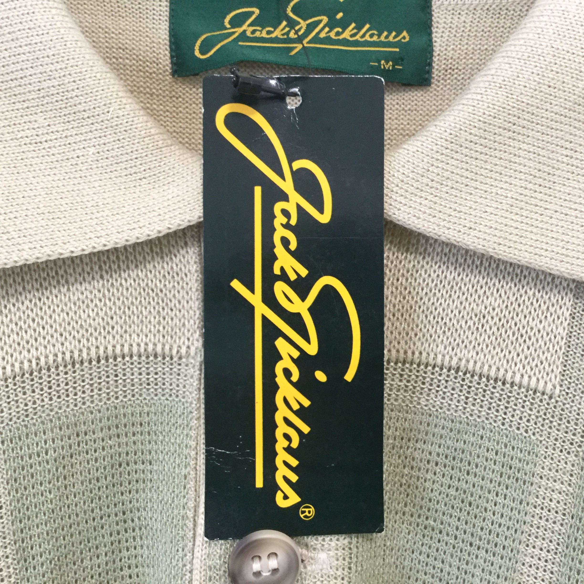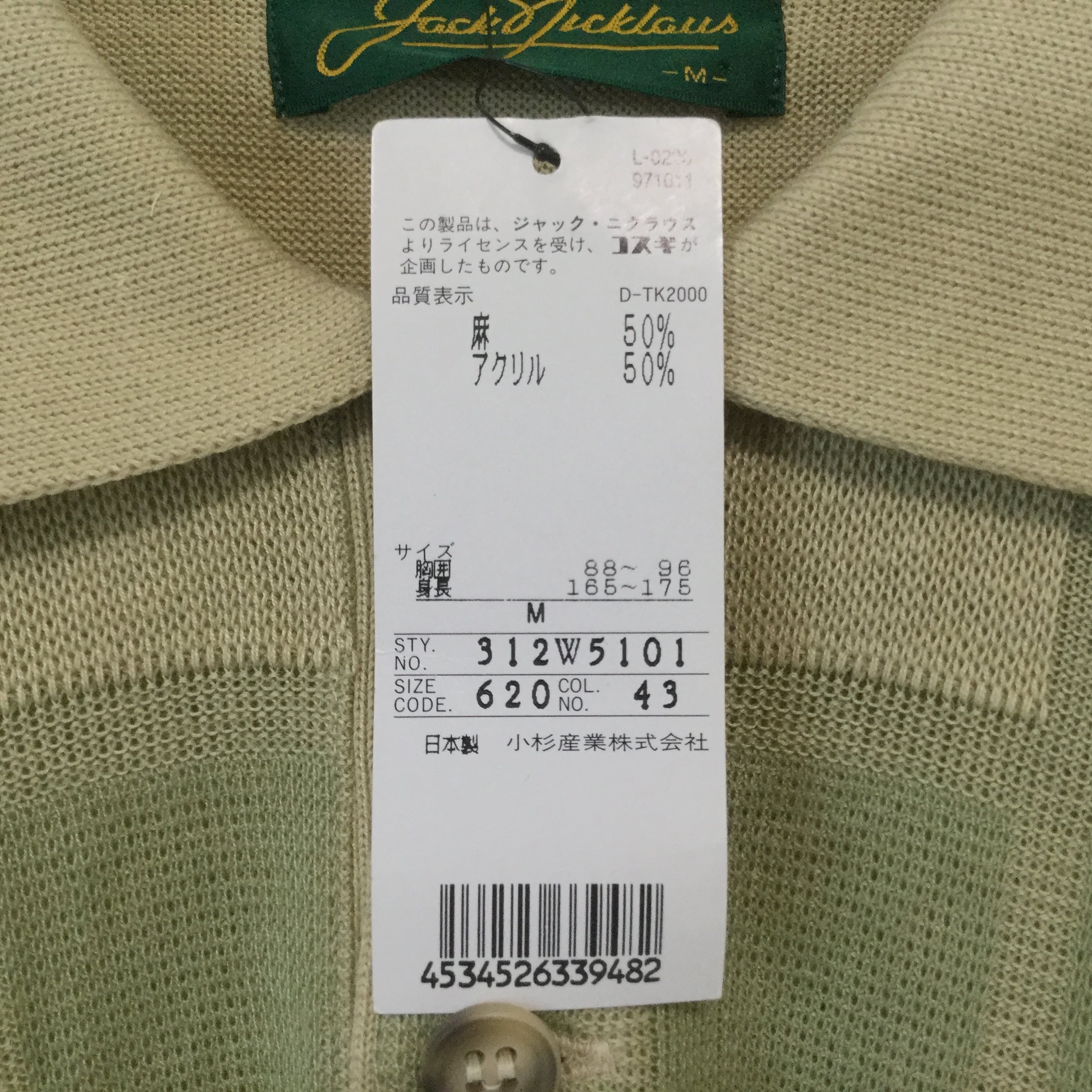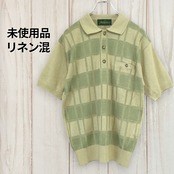 古着 未使用品 半袖ポロシャツ 日本製 Jack Nicklaus 麻混ニット 麻50% Mサイズ チェック柄 M ベージュ