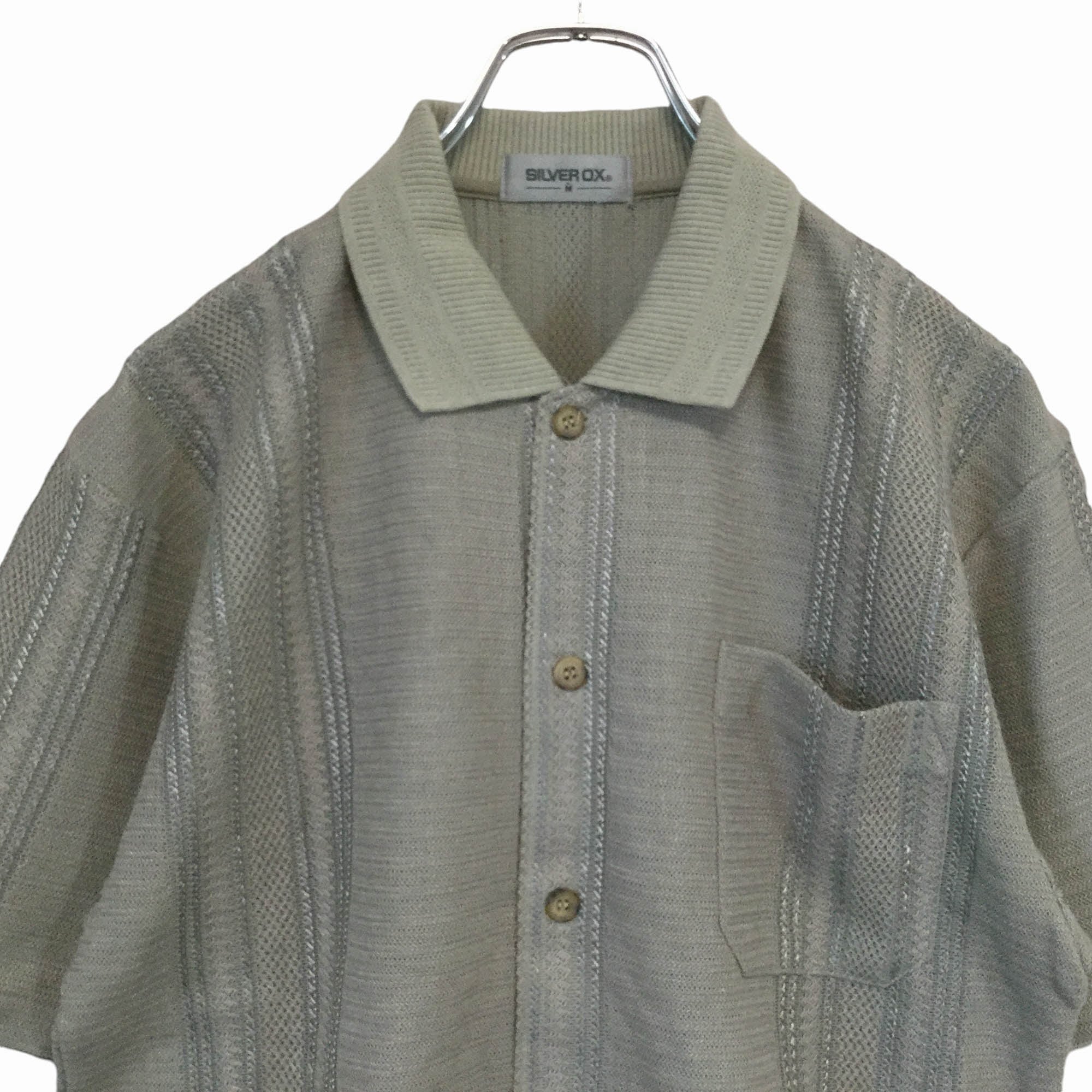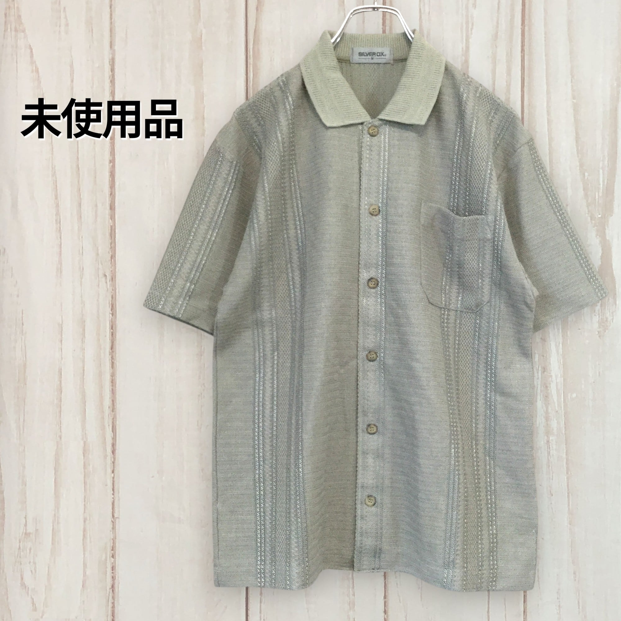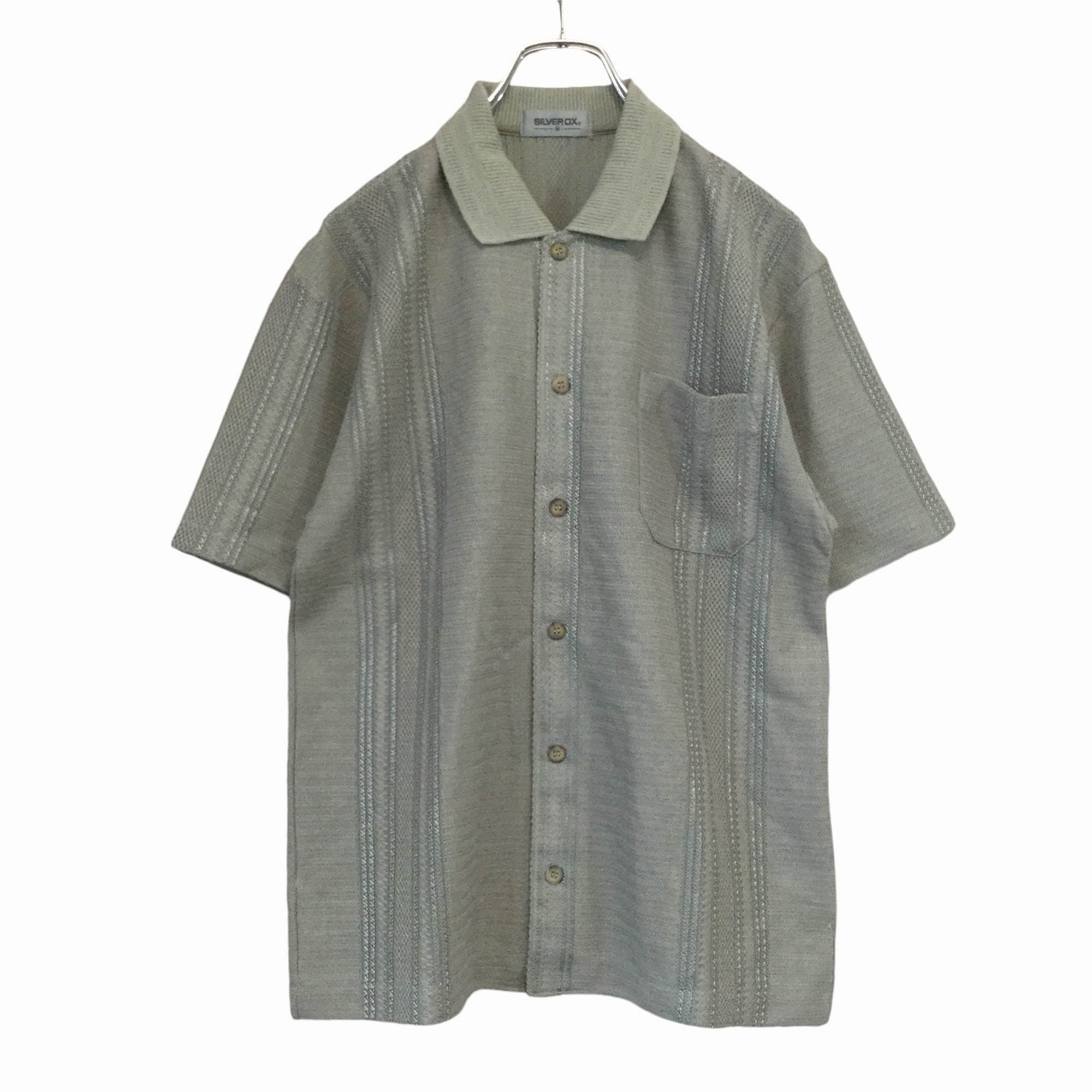SILVER OX 古着 半袖 シャツ ニット素材 日本製 未使用品 昭和レトロ ベージュ Mサイズ メンズ 羽織り ジャガード編み レトロデザイン きれいめ