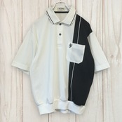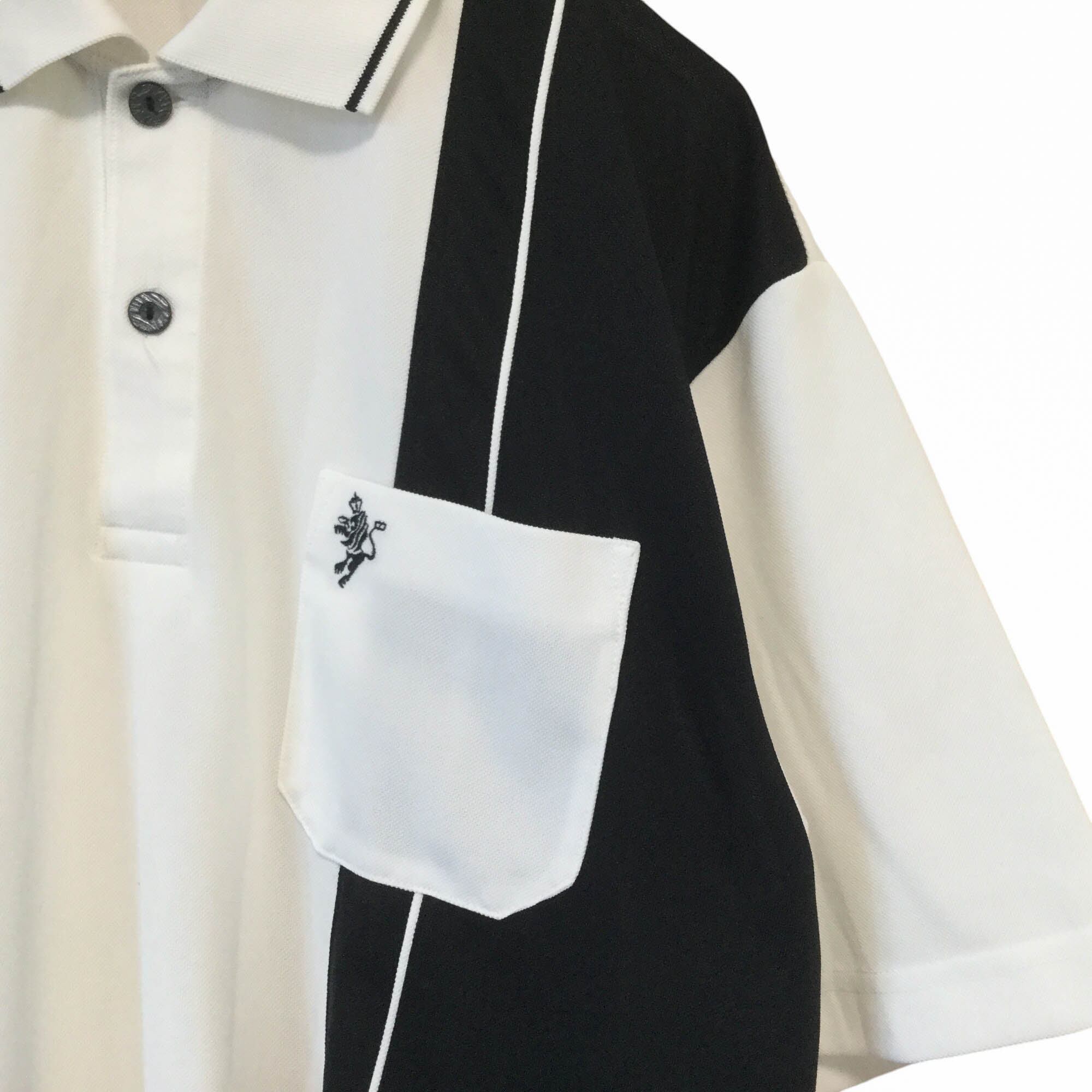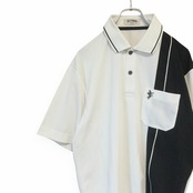 古着 半袖ポロシャツ 半袖ポロシャツ Lサイズ モノトーン 切り替え デザインポロ 胸ポケット 刺繍 ワンポイント L 白