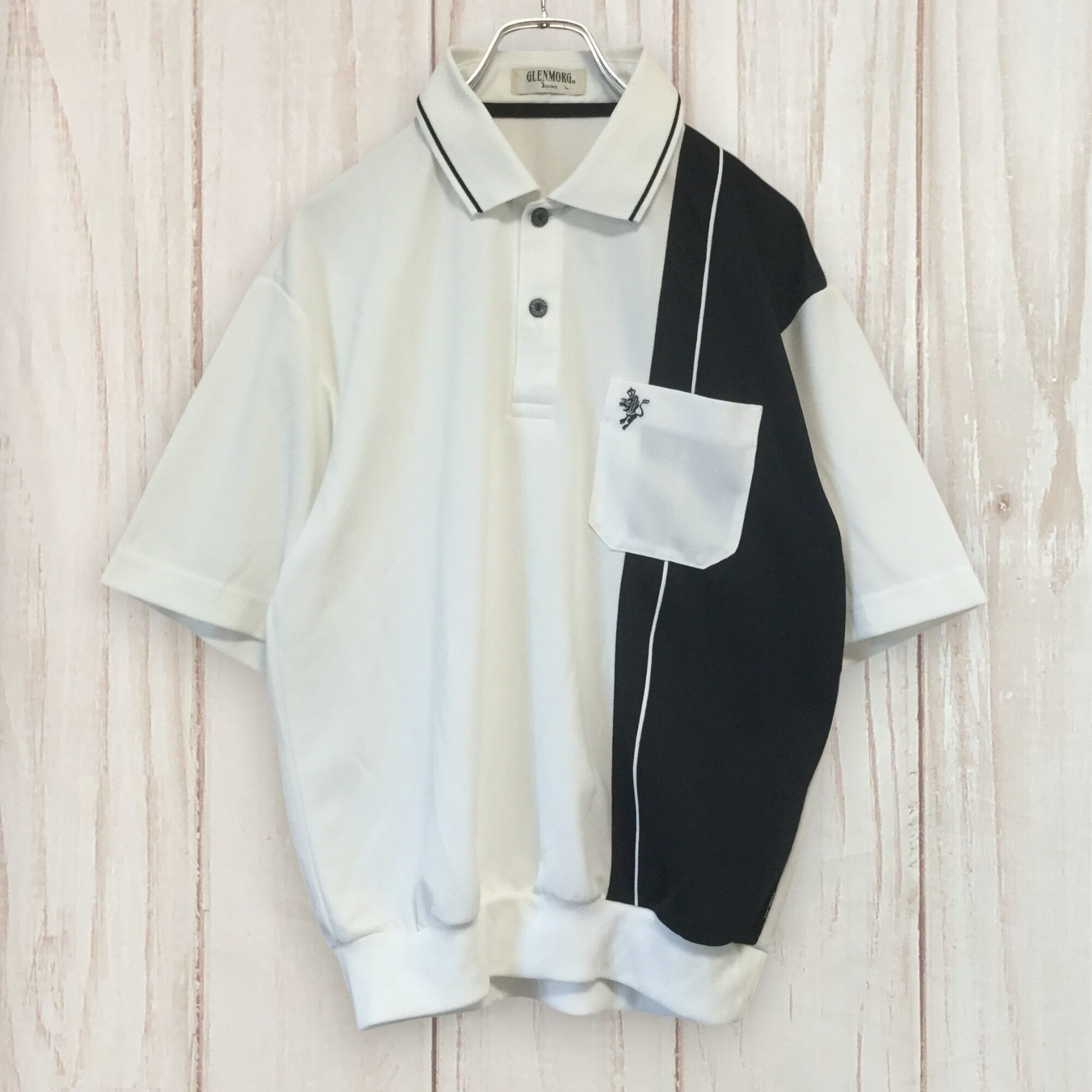 GLENMORD 半袖ポロシャツ Lサイズ 白 ホワイト モノトーン 切り替え デザインポロ 胸ポケット 刺繍 ワンポイント 袖ライン スポーツミックス シンプル 古着 メンズ