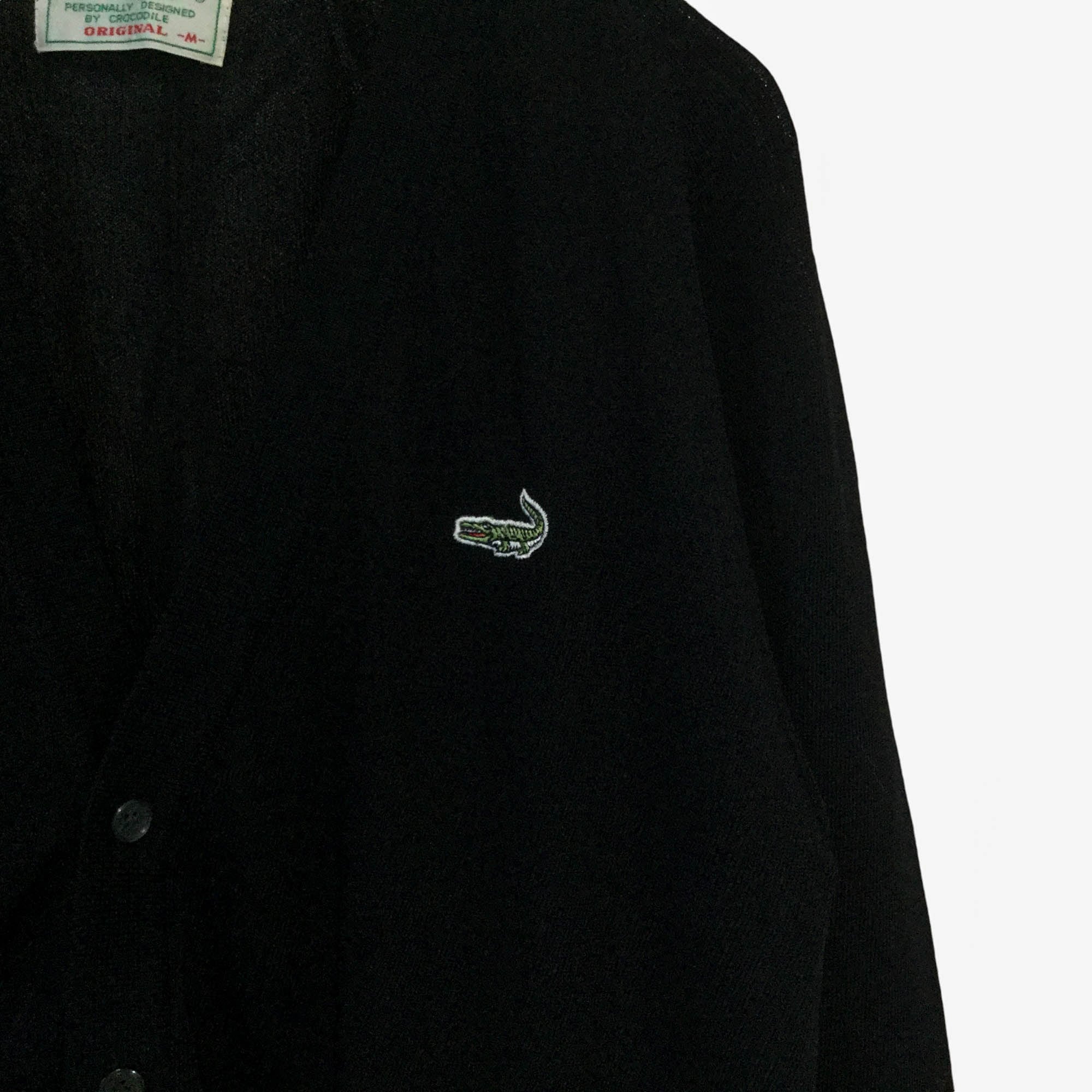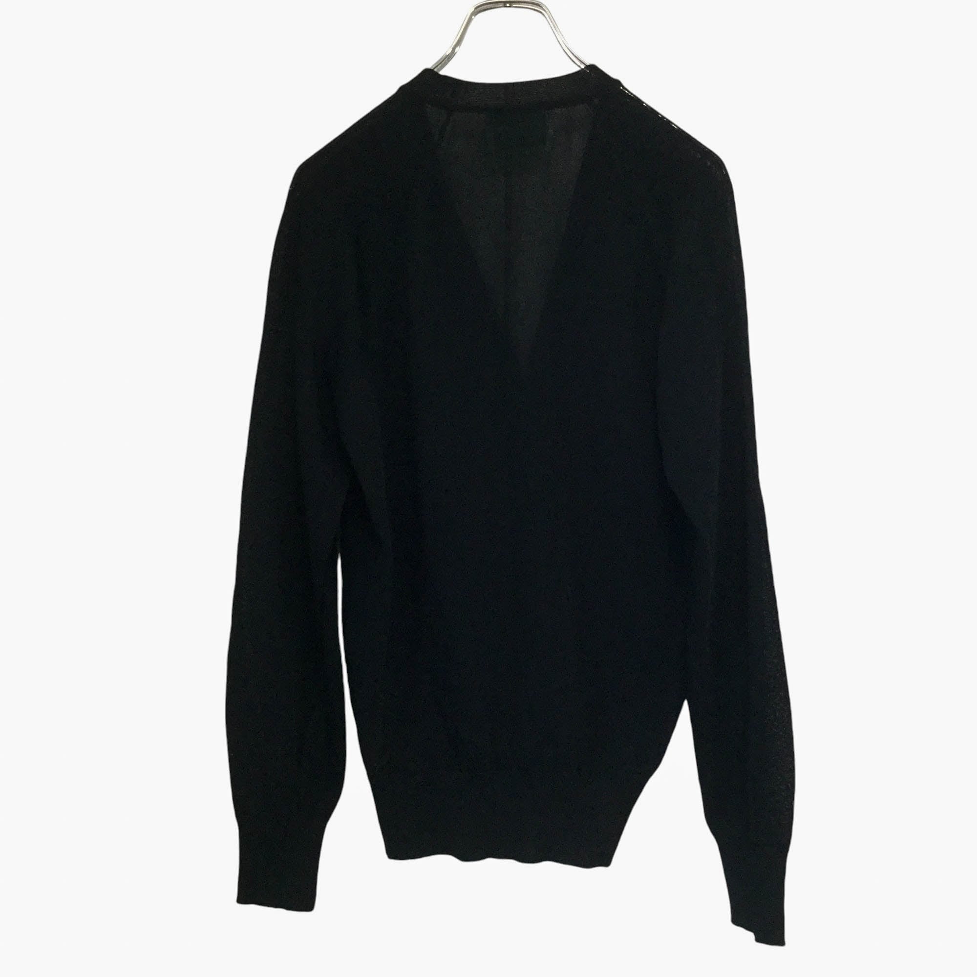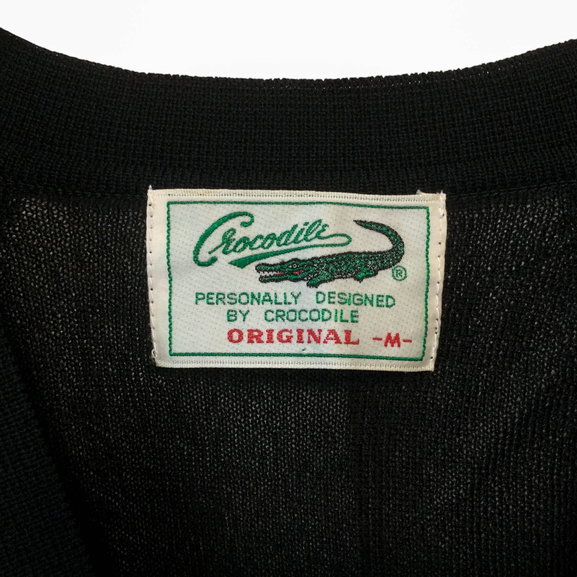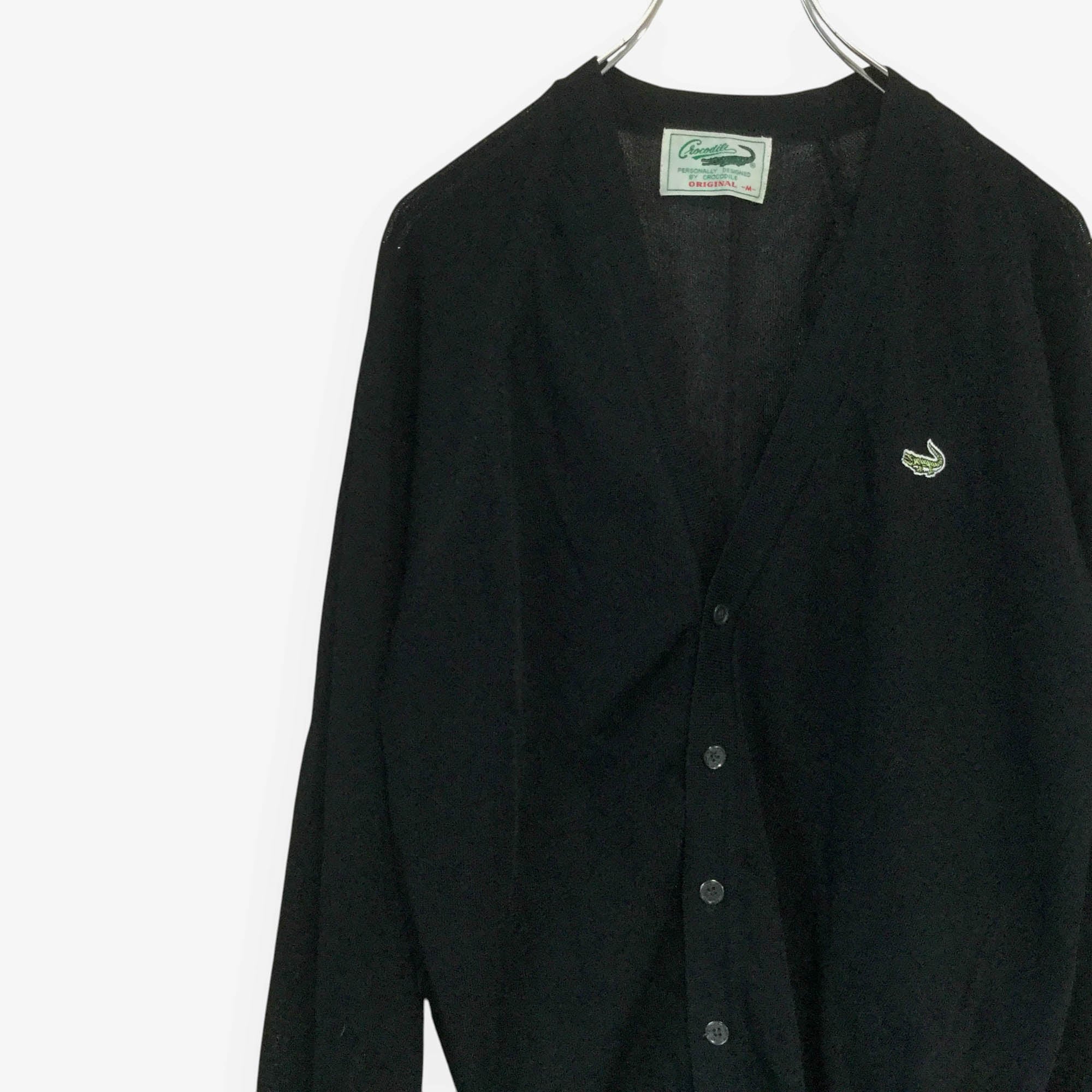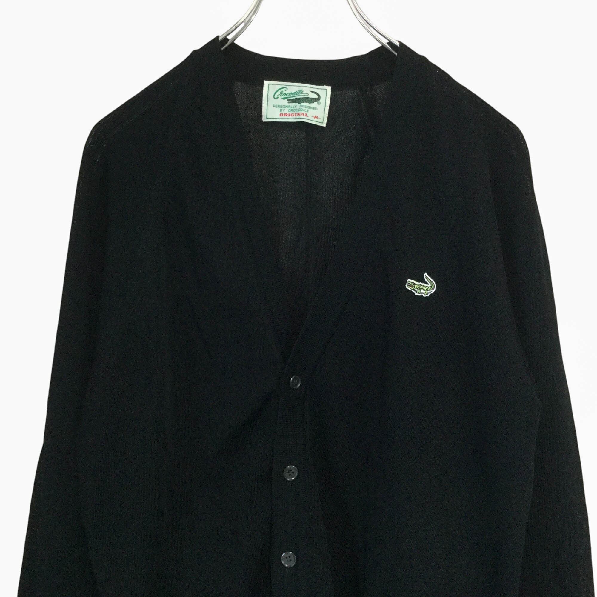 Crocodile クロコダイル カーディガン 長袖 黒 ブラック ロゴ刺繍 日本製 透かし編み 透け感 Mサイズ メンズ 美品 古着 春夏 ニット