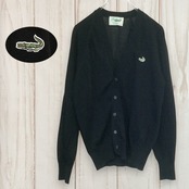 ブラックカラーにワニロゴ刺繍が映える、シンプルで上品な長袖カーディガンです。