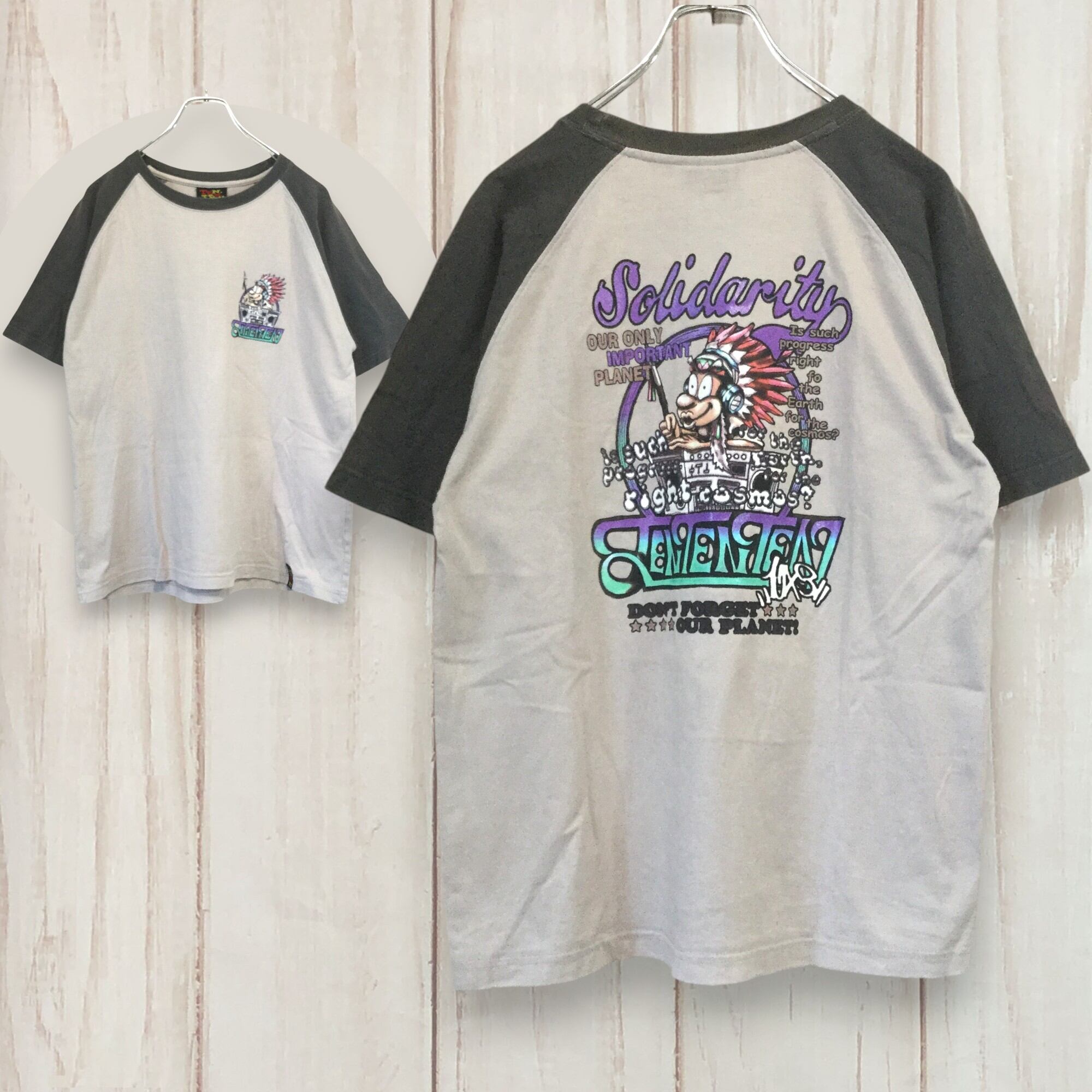 古着 半袖ラグランTシャツ ラグランTシャツ プリントT 背面プリント イラストT キャラクター グラフィック 個性派 L