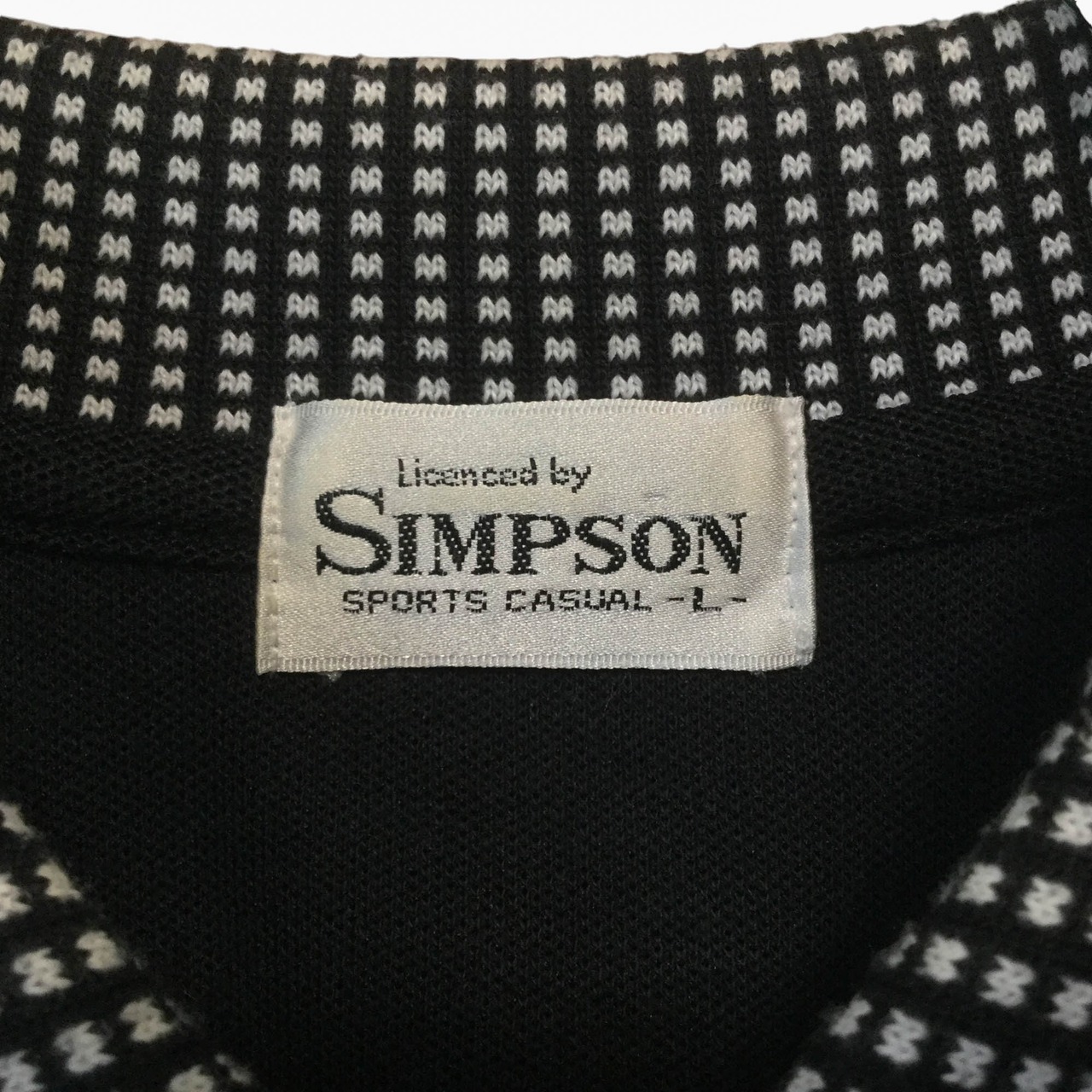 SIMPSON ポロシャツ 半袖 ハーフジップ 刺繍 犬モチーフ 襟柄 切り替え ブラック 黒 Lサイズ ゴルフウェア スポーツカジュアル メンズ 古着 衿模様