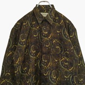 古着 総柄 長袖シャツ 日本製 ペイズリー柄 スカーフ柄 ダークカラー ブラウン Mサイズ 昭和レトロ M 茶