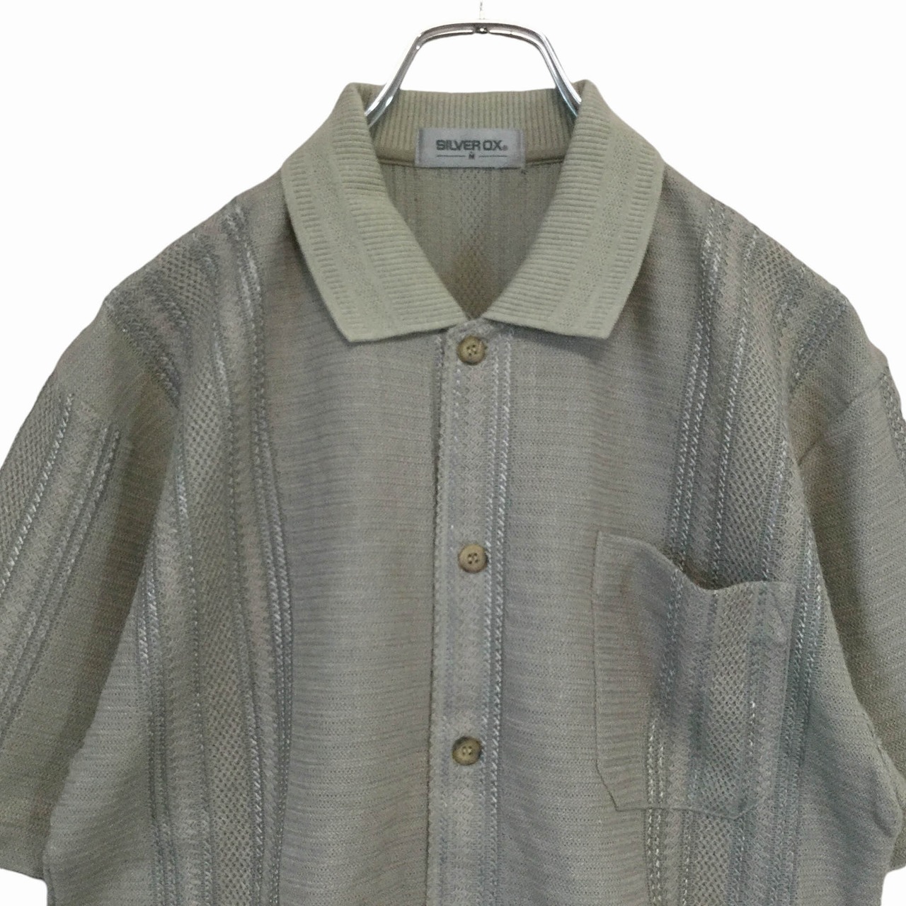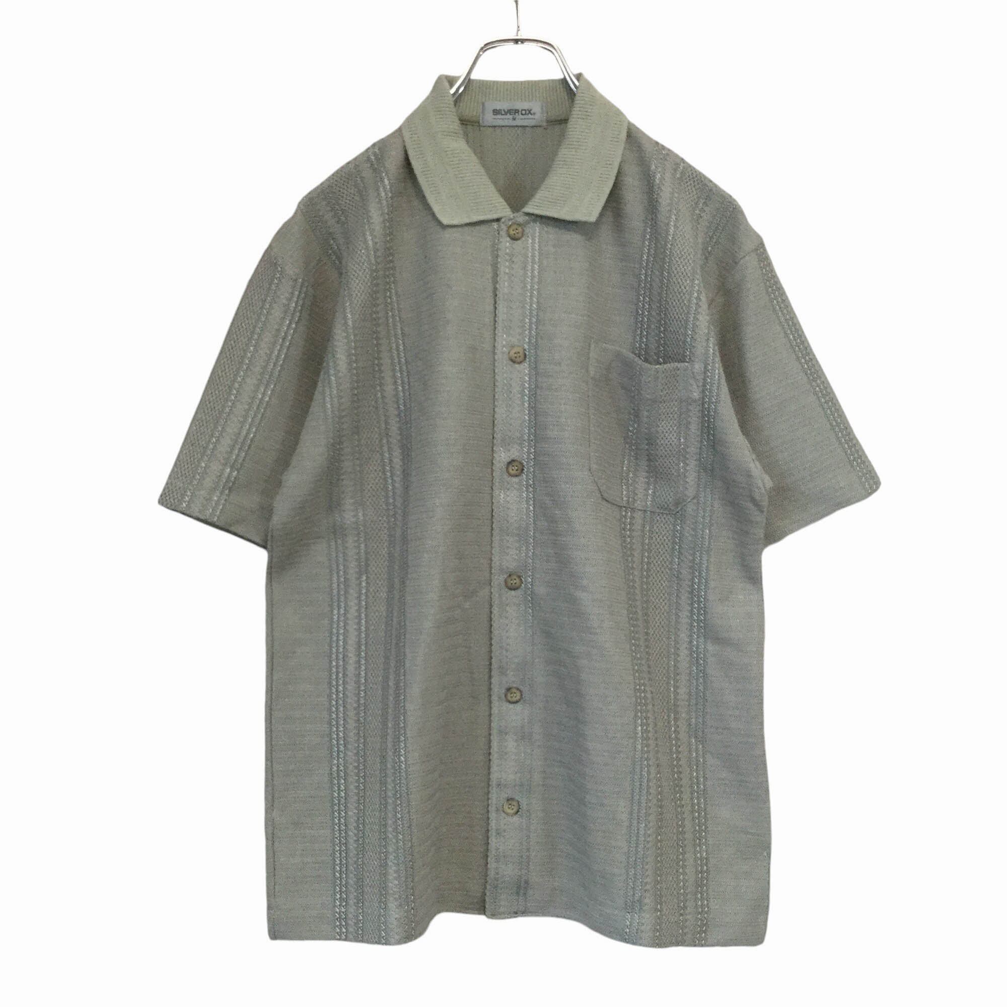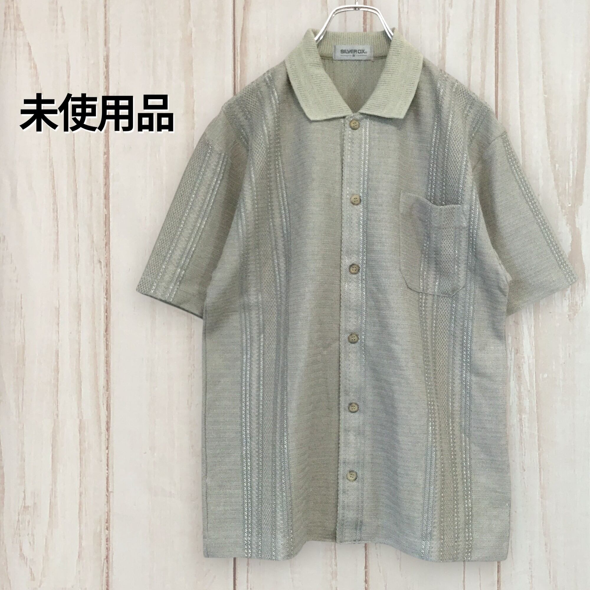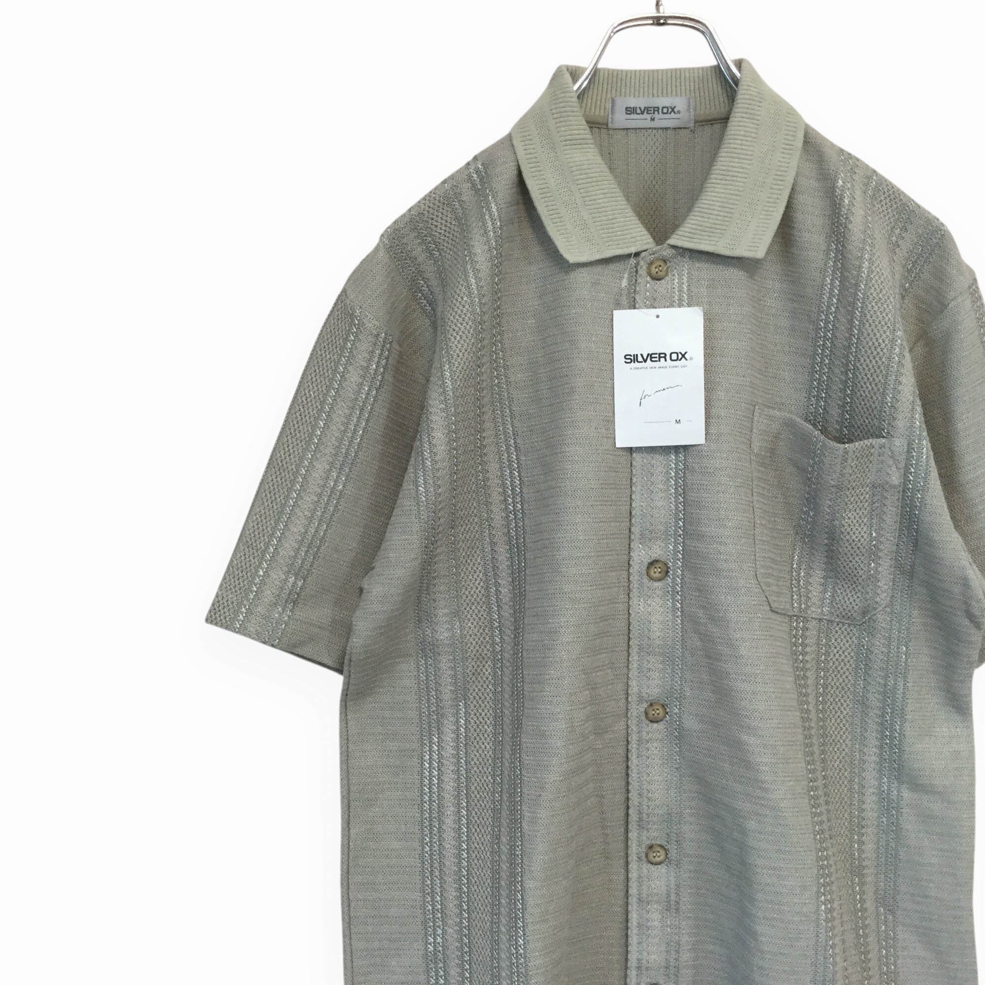 古着 半袖シャツ SILVER OX 日本製 未使用品 ジャガード編み ニット素材 昭和レトロ 羽織り ベージュ メンズ M
