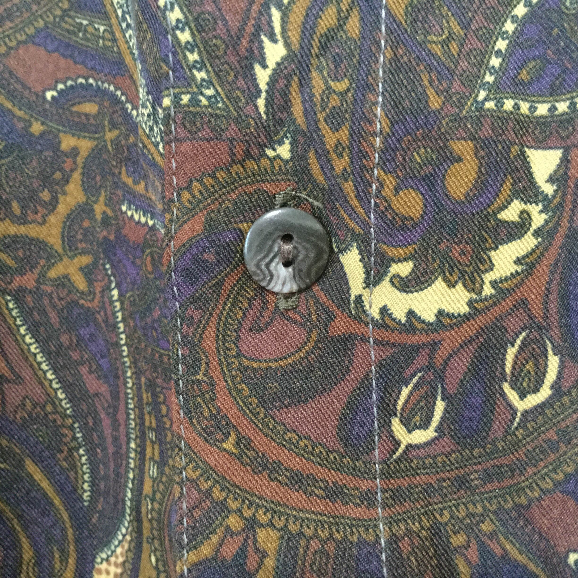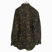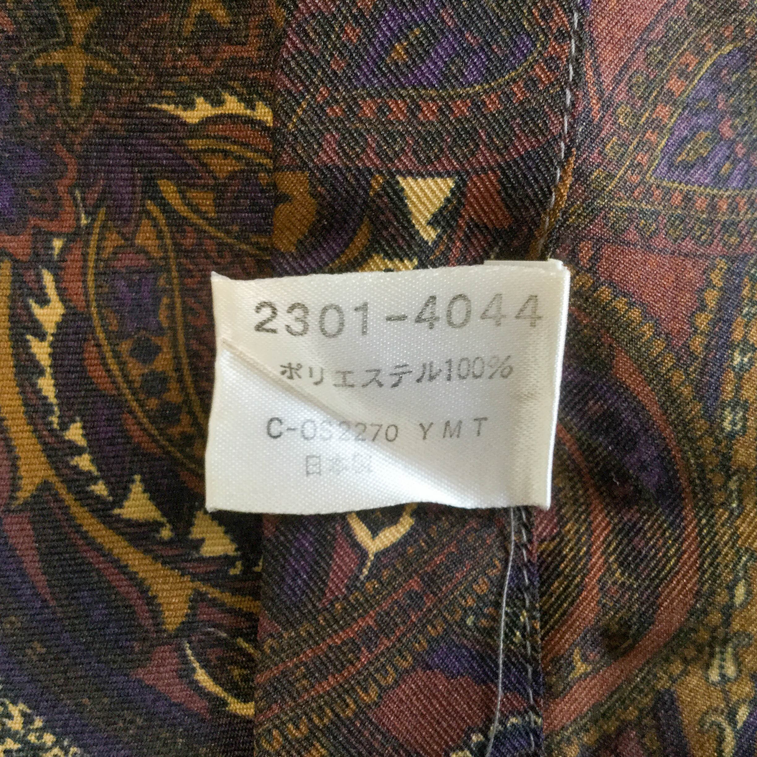 古着 総柄 長袖シャツ 日本製 ペイズリー柄 スカーフ柄 ダークカラー ブラウン Mサイズ 昭和レトロ M 茶
