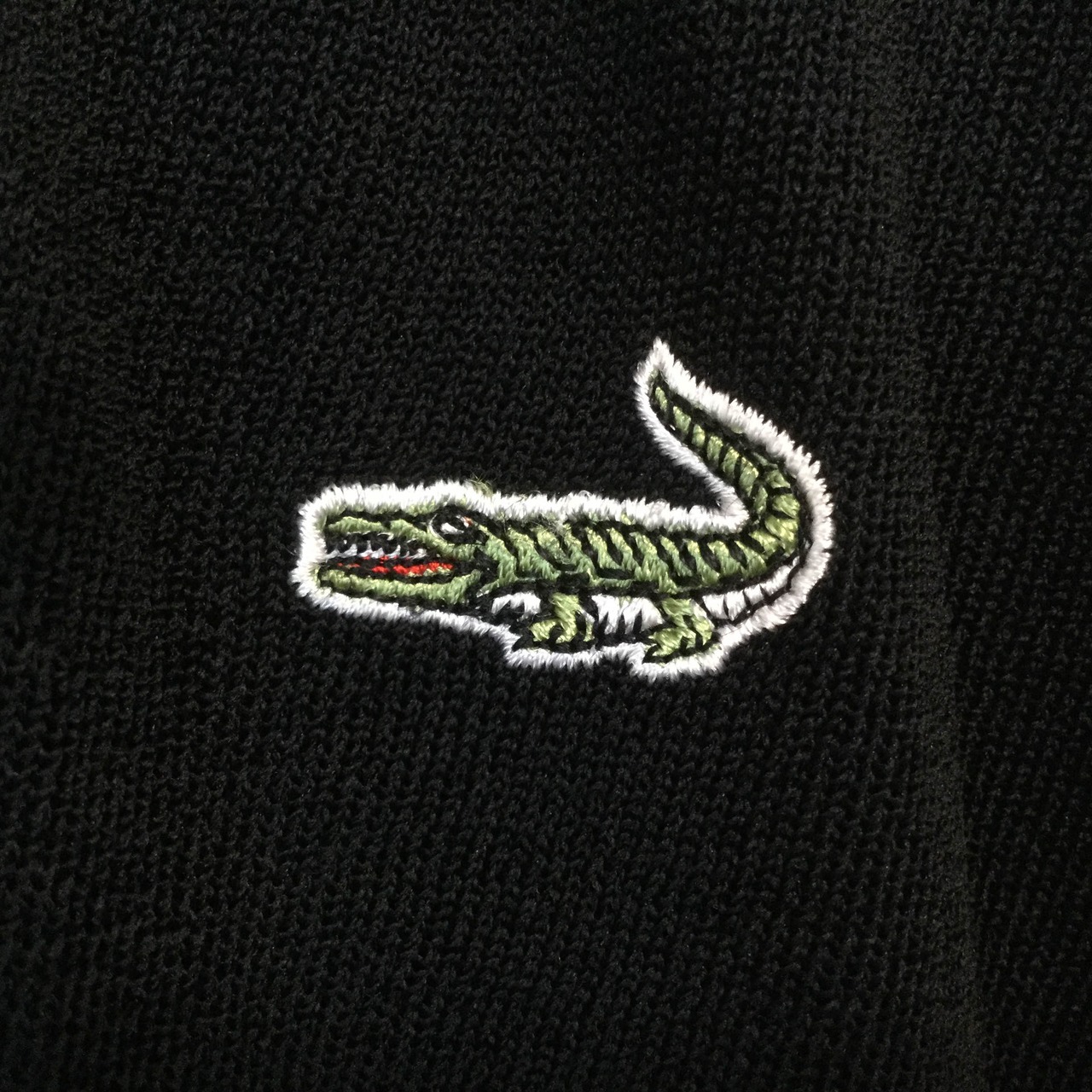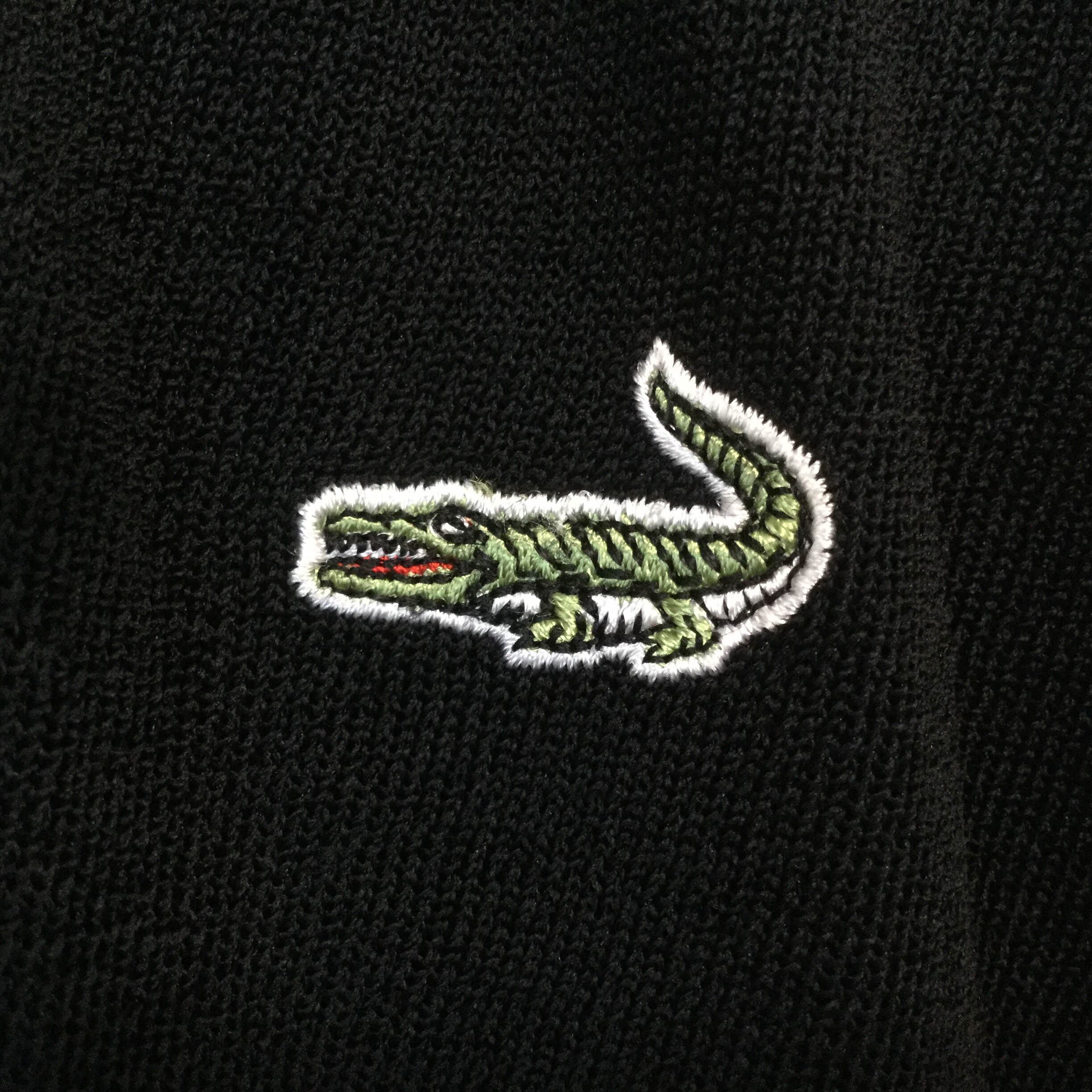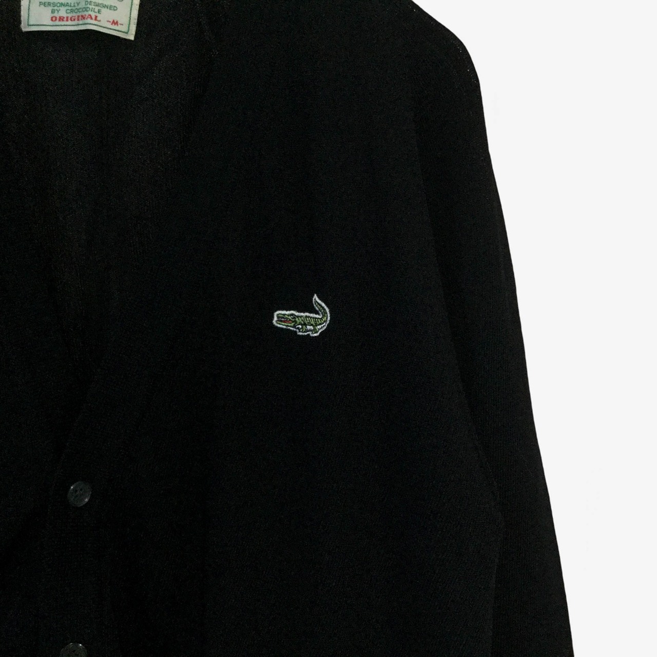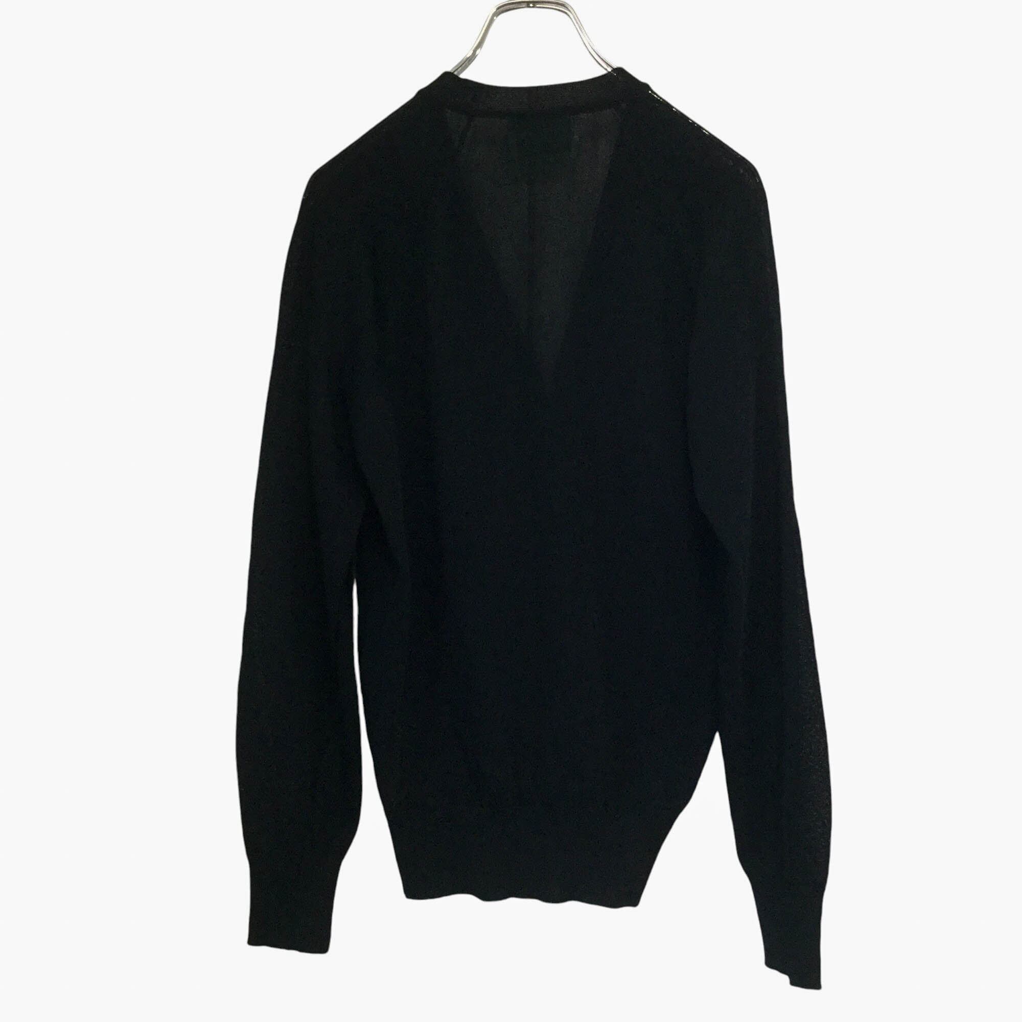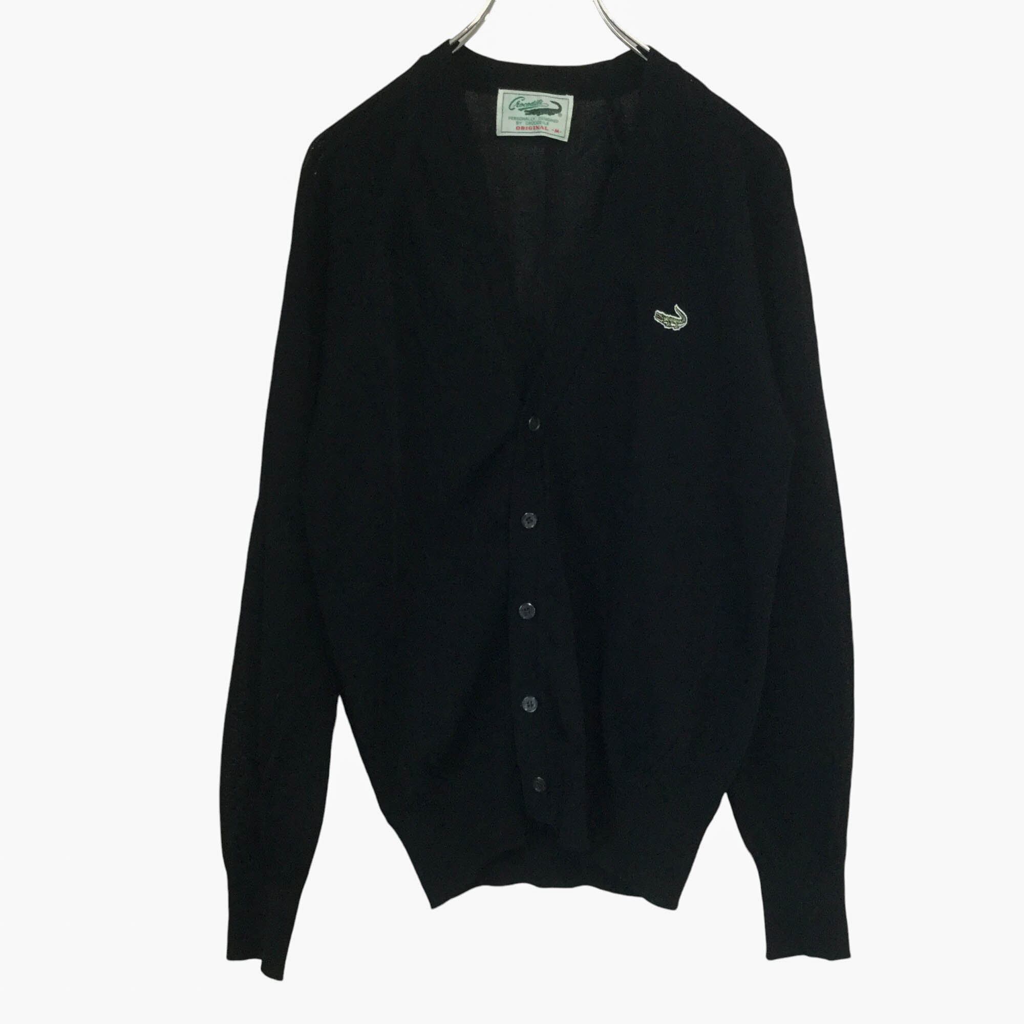 古着 クロコダイル Crocodile 長袖カーディガン 日本製 ロゴ刺繍 透かし編み ブラック 春夏 メンズ M