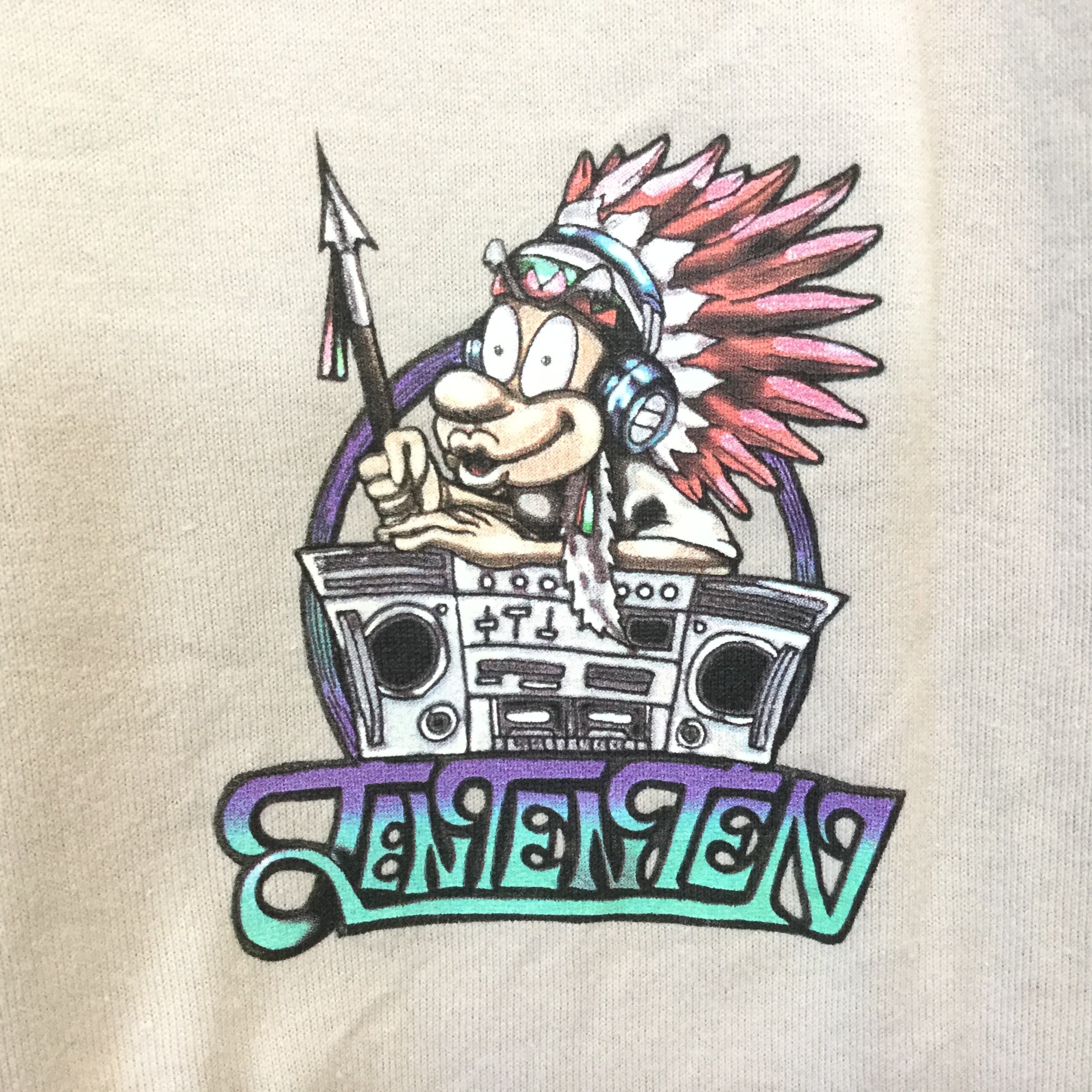 フロントはシンプル、背面に大きなイラストプリントが入ったインパクトのあるラグランTシャツです。