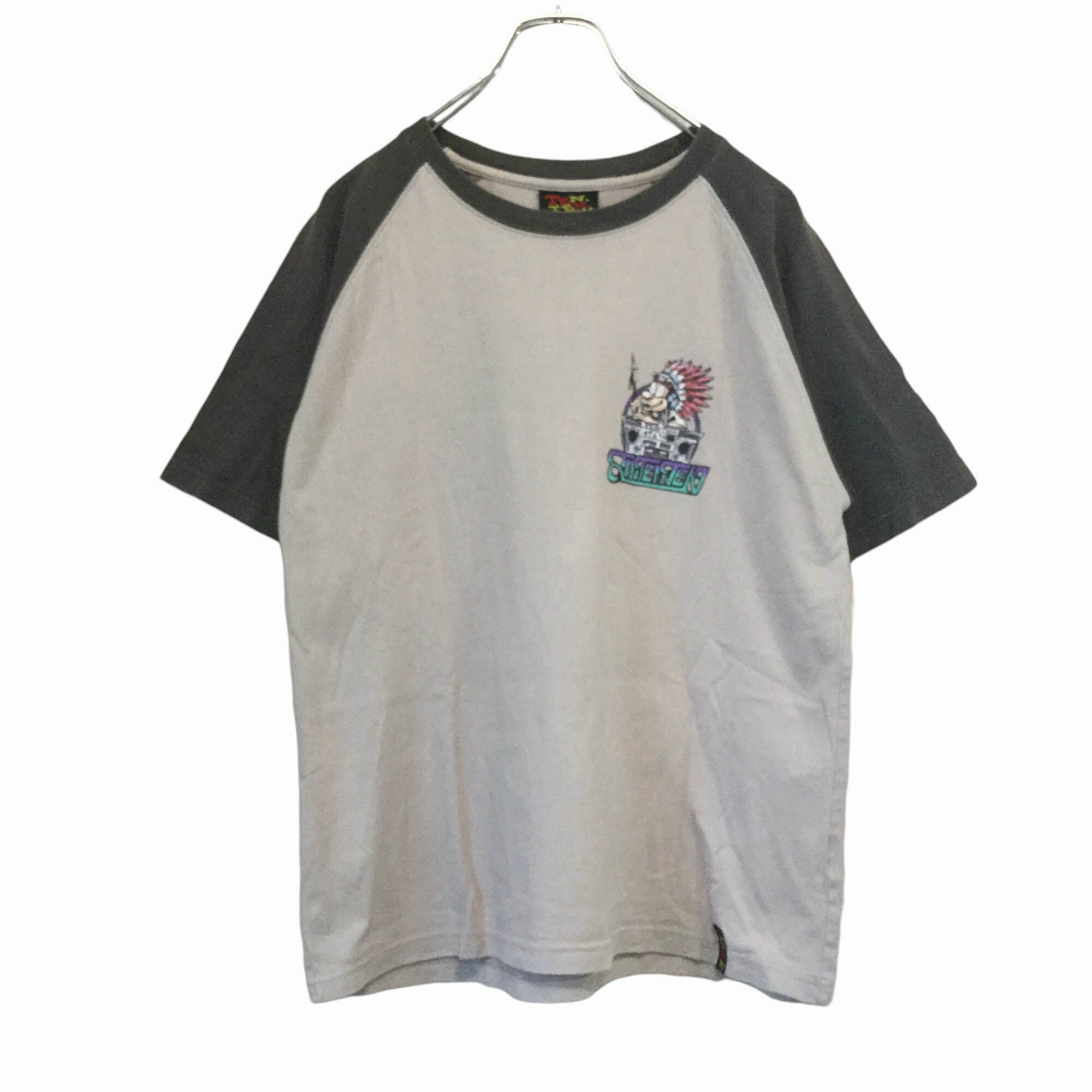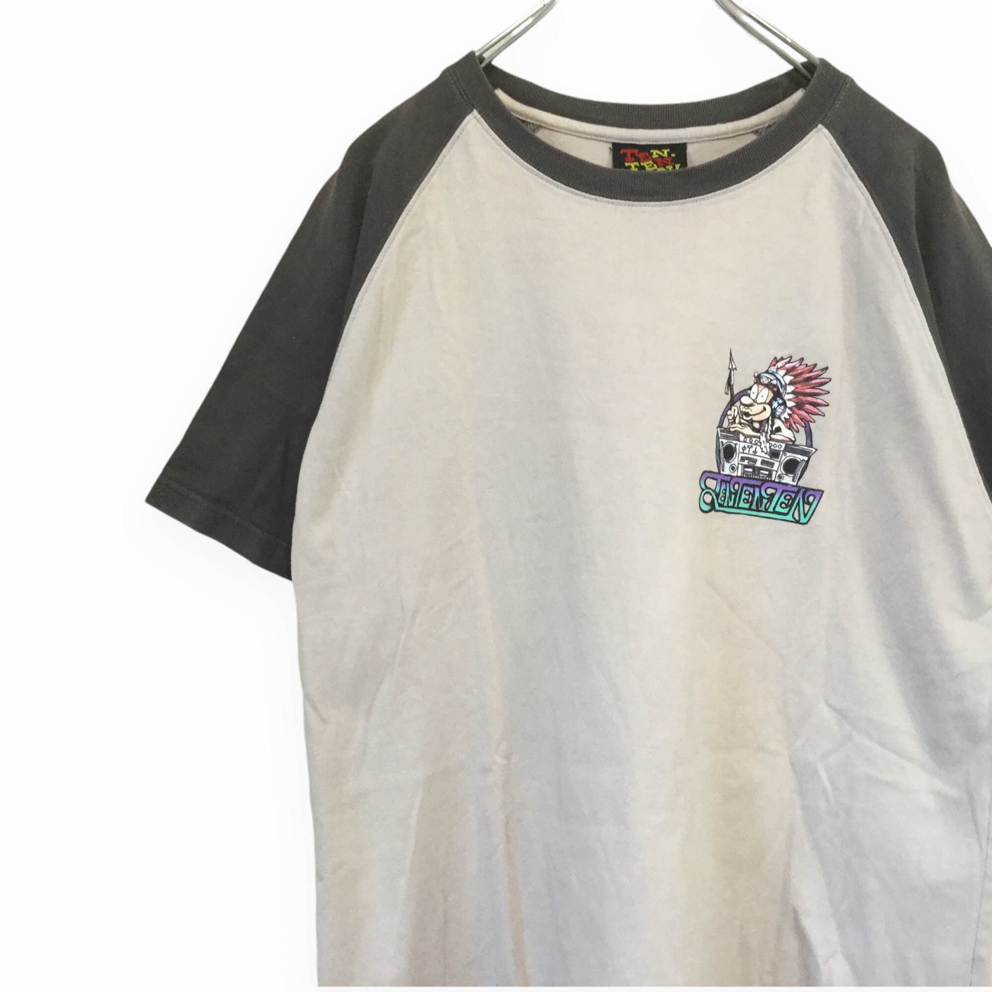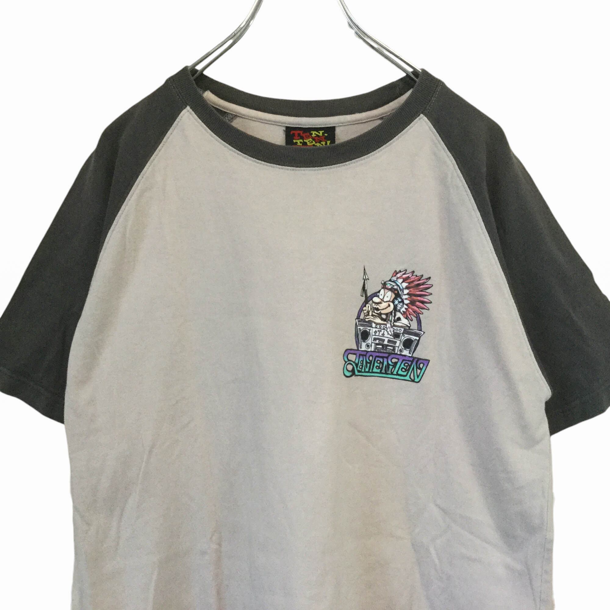 ラグランTシャツ 半袖 プリントT 背面プリント イラストT キャラクター グラフィック 個性派 配色切替 バイカラー カジュアル ストリート 古着 メンズ Lサイズ コットン100 イラスト