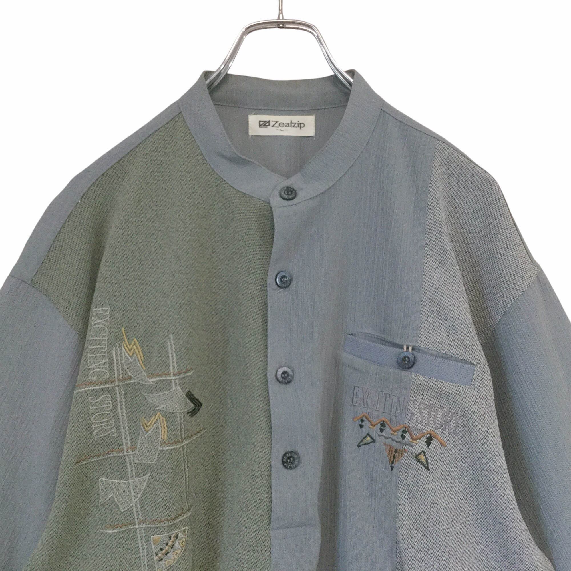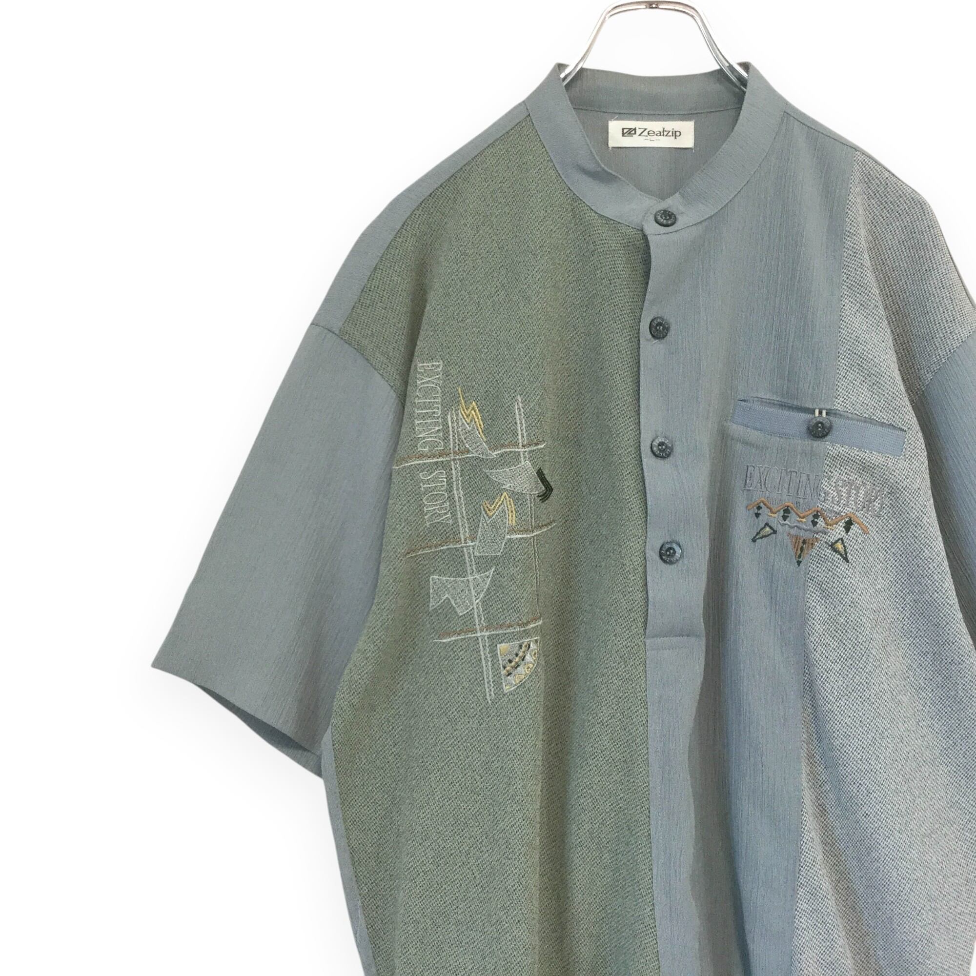 古着 半袖ポロシャツ ZEALZIP 刺繍デザイン 切替 ツートン レトロ カジュアル ゆったり メンズ XL相当