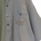 刺繍モチーフと配色切り替えが目を引く、レトロ感のある半袖ポロシャツです。