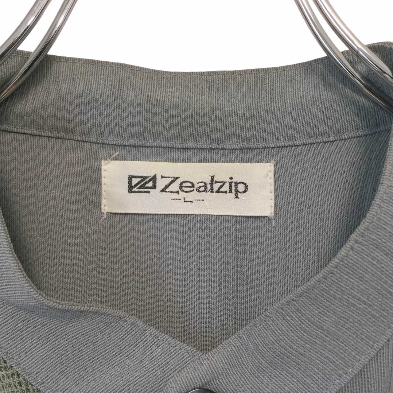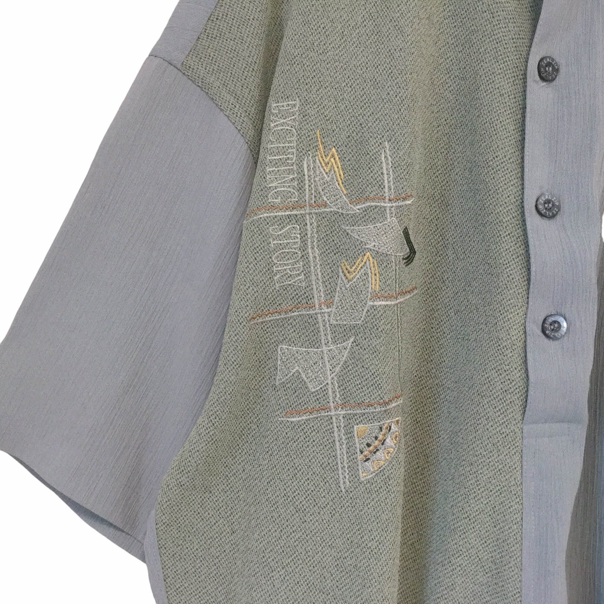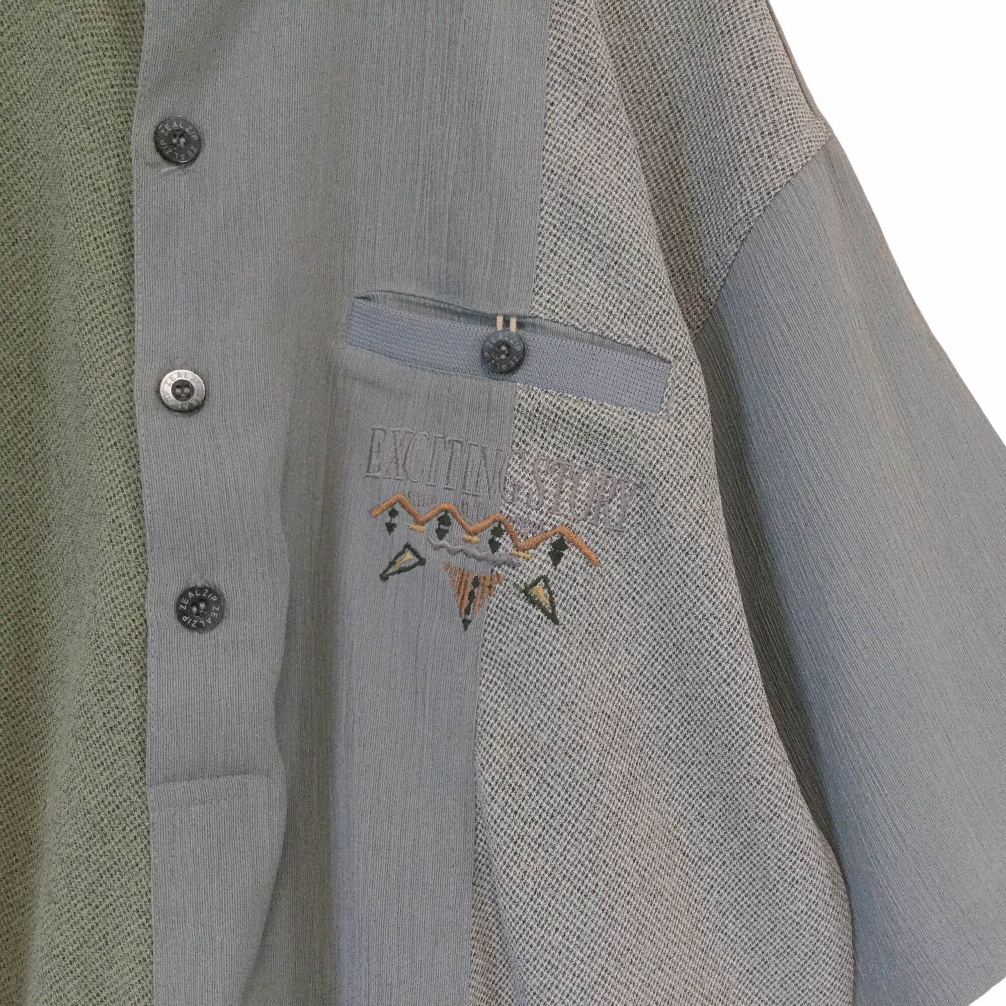 ZEALZIP 半袖ポロシャツ 刺繍デザイン 切り替えデザイン ツートンカラー レトロ柄 昭和レトロ ビンテージ風 メンズ Lサイズ グリーン 緑 ポリエステル素材 古着 カジュアル ゆったりシルエット 刺繍