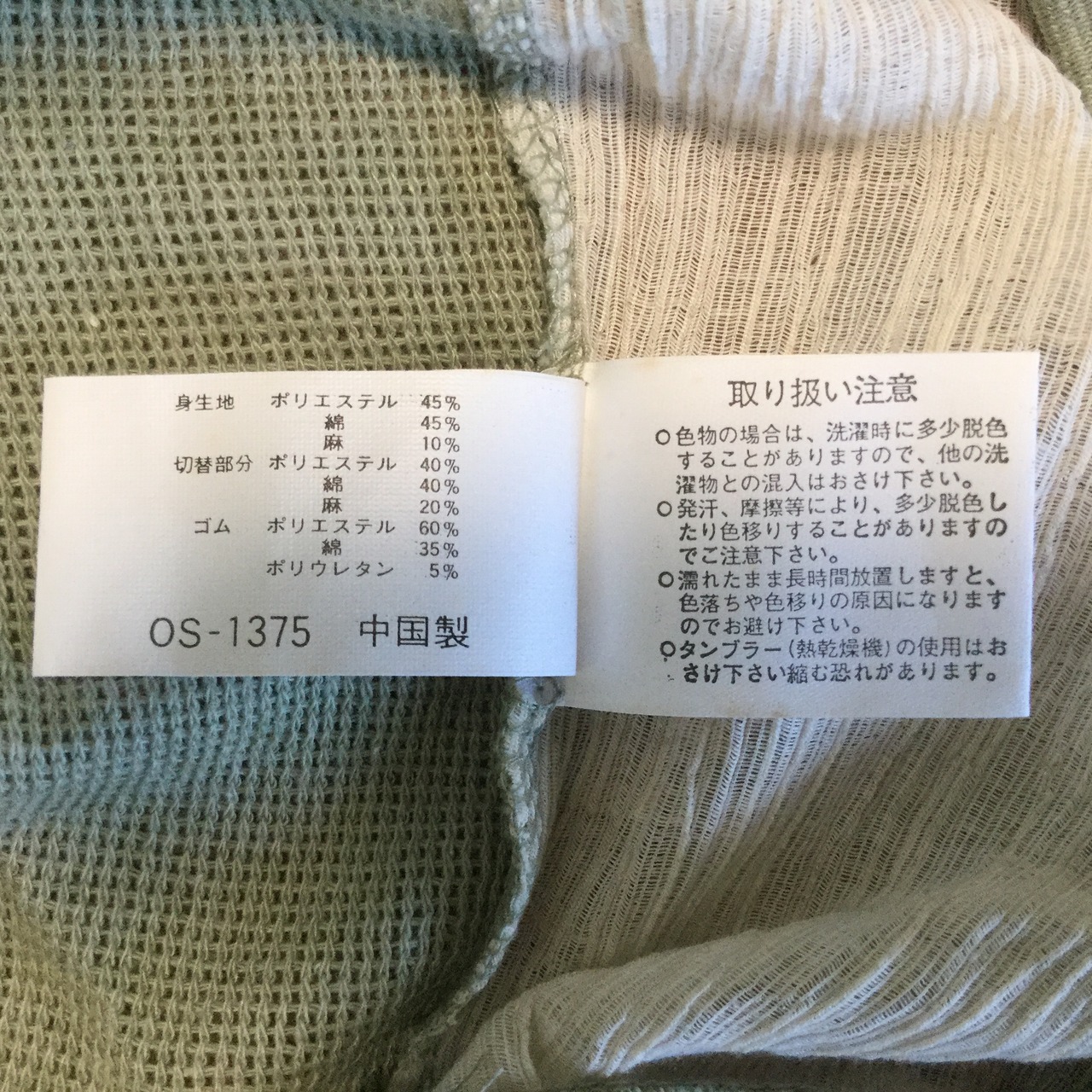 【素材】 綿45%、ポリエステル45%、麻10%
